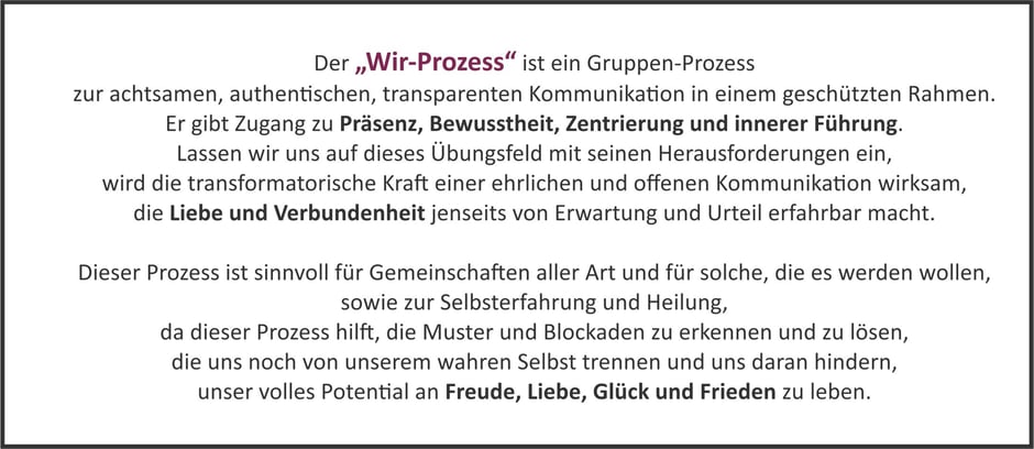 Bei Interesse, den Wir-Prozess kennenzulernen und zu erleben,